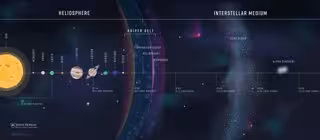 Sin embargo, todo esto sería solo un preludio de lo que McNutt y otros planificadores de misiones lanzan como el propósito científico principal de la sonda. Aproximadamente una década después del lanzamiento, perforaría la heliosfera, una región similar a un capullo alrededor de nuestro sistema solar creada por "vientos" de partículas que fluyen de nuestro sol, para alcanzar y estudiar los rayos cósmicos y las nubes de plasma que forman el "medio interestelar" que llena los espacios oscuros entre las estrellas.