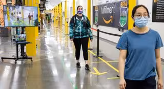 Amazon ha presentado una nueva tecnología para combatir la difusión del coronavirus en sus instalaciones que funciona como un 'asistente de distancia' y detecta en tiempo real si los trabajadores no guardan la distancia de seguridad entre ellos.