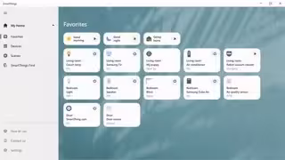 La aplicación permite instalar SmartThings en Windows 10 para ver el estado de los dispositivos y electrodomésticos vinculados, recibir notificaciones y gestionar su uso de forma remota, tanto individual como agrupada en modos.