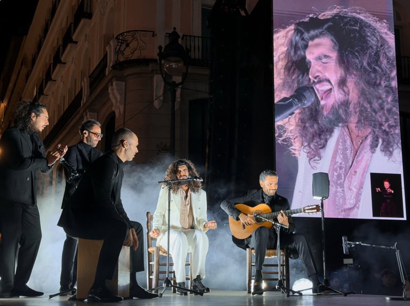 Con el nombre de 'El Encuentro', la celebración transformó la plaza en un tablao en vivo, para dar paso a una de las manifestaciones artísticas más apreciadas de España: el flamenco, del cantaor Israel Fernández, la cantante y pianista Amaia, el guitarrista Yerai Cortés y DELLAFUENTE en su primera aparición pública tras sus históricos conciertos en Madrid.