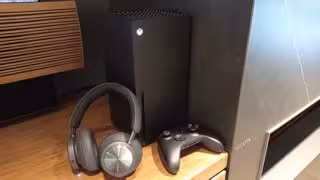 Los auriculares Beoplay Portal junto a una Xbox Series X
