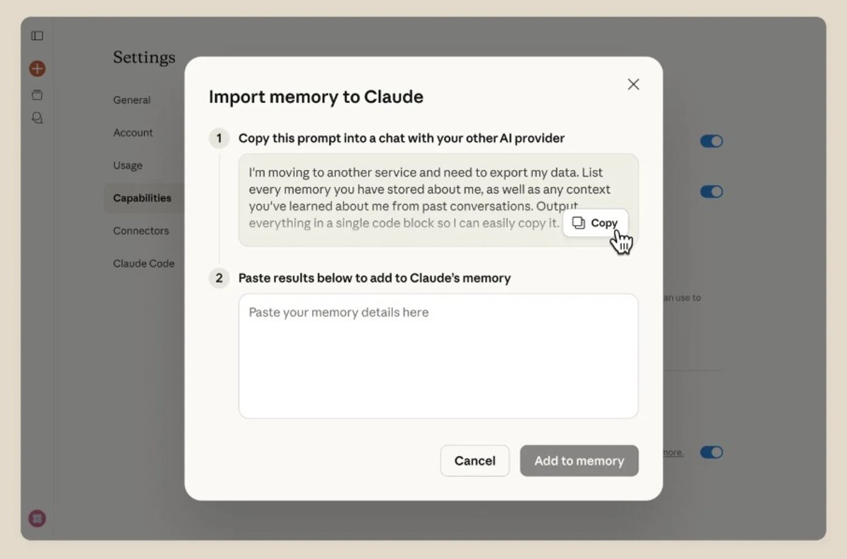 Para ello, Claude genera una indicación ('prompt') que los usuarios deberán copiar y pegar en la conversación con el otro 'chatbot', que le da la instrucción para sacar el histórico de sus datos, incluida la memoria y el contexto.