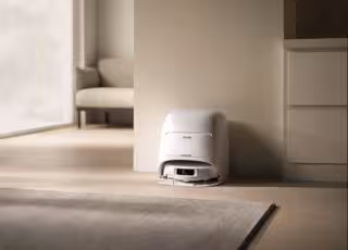 Para mantener los paños de mopa limpios, la estación base aplica 12 newtons de fuerza descendente durante la limpieza. Y para reducir el ruido, emplea un sistema en tres etapas que filtra hasta el 80 por ciento del ruido durante la recogida de polvo.