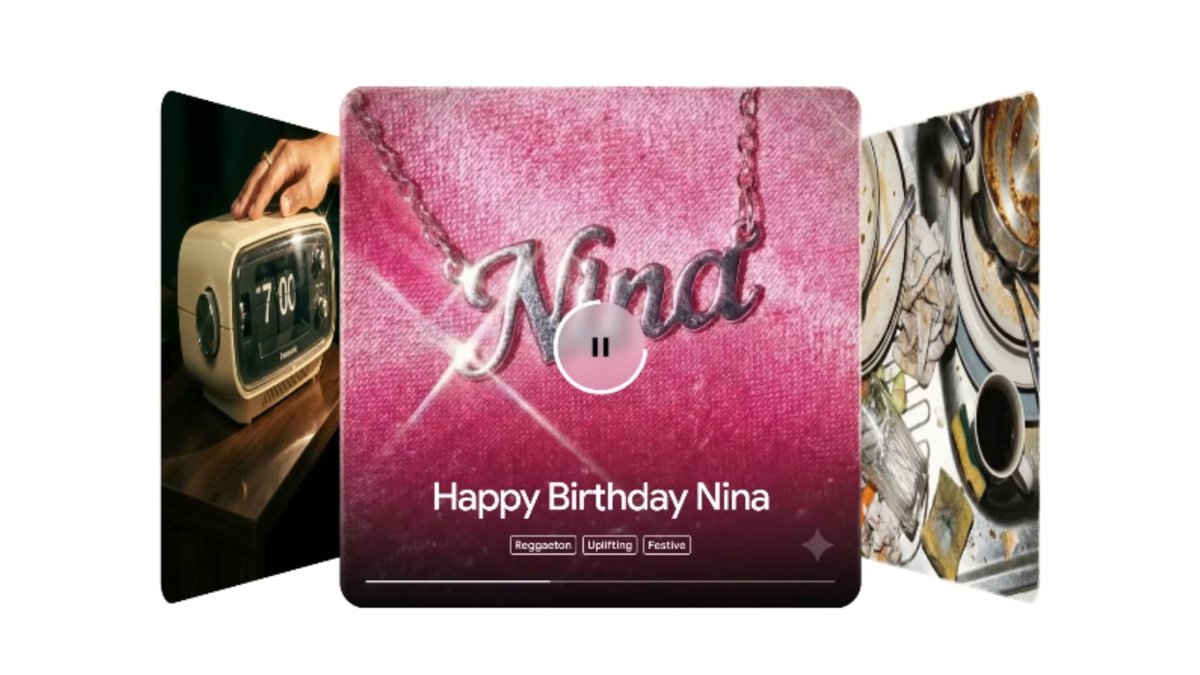 Generación de pistas musicales con Lyria 3 en Gemini.