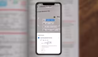 El icono de la cámara que aparece en la barra de búsqueda de la aplicación Google permite acceder a las funciones de Lens directamente desde el Buscador. Al apuntar la cámara sobre, por ejemplo, una ecuación, la función 'Tarea' ofrece los pasos a seguir para resolverla.