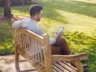 Archivo - Hombre leyendo en el parque en un Kindle - AMAZON - Archivo