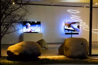 La instalación, realizada, en colaboración con la artista Carla Cascales, destaca la importancia de la luz y del diseño de la nueva gama OLED+ en interiores. "(En Philips TV) nos hemos propuesto diseñar modelos basados en un concepto minimalista que haga de nuestros televisores dispositivos elegantes capaces de adaptarse a cualquier interior", ha declarado la diseñadora senior de Philips TV, Lisa Grahner, presenta también en el acto.