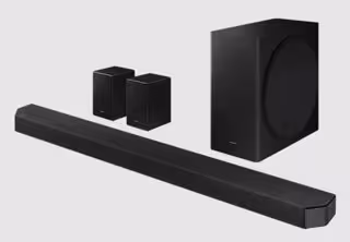 El buque insignia de la gama de las barras de sonido de la Serie Q de Samsung es el modelo HW-Q950A, que cuenta con 11.1.4 canales. Gracias a su combinación con Dolby Atmos y DTS:X, permite escuchar cada sonido por separado mientras fluye alrededor del espectador.