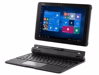 La tableta de Fujitsu puede conectarse a una base de teclado para trabajar con ella como si fuera un PC, y cuenta con un conector de red integrado y un puerto de carga, que proporcionan un mayor voltaje de carga, por lo que la batería puede alcanzar el 80 por ciento en tan solo una hora.