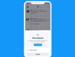 Cuando los usuarios intenten 'retuitear' o citar un 'tuit' etiquetado por la plataforma como contenido que viola sus políticas sobre desinformación, aparecerá un mensaje, una notificación que indica que se trata de contenido controvertido.