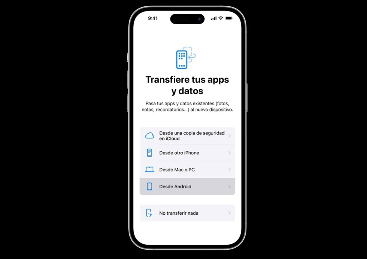 Inicio del proceso de transferencia de datos desde Android a iPhone - APPLE