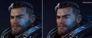 Xbox ha compartido capturas de pantalla del videojuego Gears Tactics para mostrar el funcionamiento de Clarity Boost, en el que se muestra un mayor nivel de detalle en las texturas del personaje en su piel y en su traje. También hace que el pelo y la barba se perciban de forma mucho más nítida.