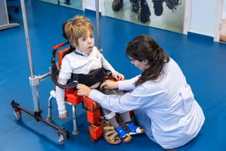Esta estructura permite caminar a los niños que usan sillas de ruedas durante las sesiones de rehabilitación y reduce la degradación muscular y las complicaciones médicas.