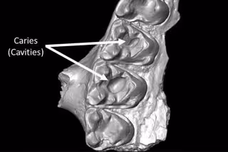 Fósiles dentales de la especie de primate Microsyops latidens, que datan del Eoceno temprano (hace unos 54 millones de años), muestran las primeras evidencias conocidas de caries dental en mamíferos.