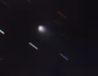 Las observaciones de Gemini utilizadas para esta imagen se obtuvieron en dos bandas de color (filtros) y se combinaron para producir una imagen en color. Las imágenes rojas y azules corresponden a estrellas de fondo que aparecen distorsionadas por el movimiento del cometa.