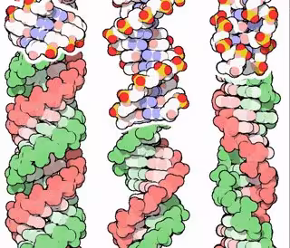 Tres conformaciones de la doble hélice de ADN: A (izquierda), B (centro) y Z zurda (derecha) - DAVID S. GOODSELL AND RCSB PDB