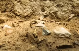Las excavaciones recientes revelaron una capa de destrucción de cuando las paredes del edificio se derrumbaron, incluyendo una fila de recipientes destrozados, tazones, lámparas, utensilios de cocina, almacenamiento destrozado y frascos de almacenamiento.