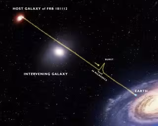 Los astrónomos aún no saben qué produce las FRB, y solo recientemente han podido rastrear algunas de estas señales de radio muy cortas y muy brillantes hasta las galaxias en las que se originaron. El estallido de noviembre de 2018 (llamado FRB 181112) fue detectado y localizado por el instrumento que fue pionero en esta técnica, el radiotelescopio australiano ASKAP. Las observaciones de seguimiento con otros telescopios identificaron no solo su galaxia anfitriona sino también una galaxia brillante frente a ella.