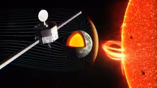 Ilustración del orbitador BepiColombo MIO observando el entorno de plasma cerca de la superficie de Mercurio.