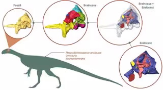 Thecodontosaurus vivió a finales del Triásico hace unos 205 millones de años y era del tamaño de un perro grande. Aunque sus fósiles se descubrieron en el siglo XIX, muchos de los cuales se conservan cuidadosamente en la Universidad de Bristol, los científicos solo recientemente han podido implementar software de imágenes para extraer nueva información sin destruirlos. Los modelos 3-D se generaron a partir de tomografías computarizadas extrayendo digitalmente el hueso de la roca, identificando detalles anatómicos sobre su cerebro y oído interno nunca antes vistos en el fósil.