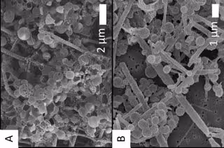 "Empiezan a verse como un residuo en el fondo del recipiente experimental", dice la coautora Christine Nims, "pero bajo el microscopio, se podían ver estas hermosas estructuras que parecían microbianas. Y se formaron en estas condiciones muy estériles, por lo que estas características asombrosas esencialmente surgieron de la nada. Fue un trabajo realmente emocionante ".