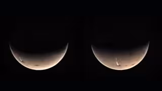 Estas nuevas imágenes de la nube, que pueden alcanzar hasta 1.800 km de longitud, fueron tomadas el 17 y 19 de julio por la Cámara de Monitoreo Visual (VMC) a bordo del orbitador Mars Express de la ESA, que ha estado estudiando el Planeta Rojo desde la órbita durante los últimos 16 años.