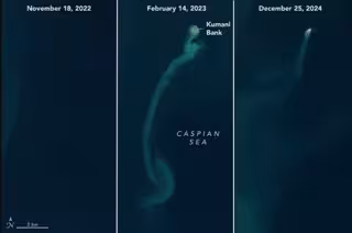 Una isla emergió del mar Caspio después de que un volcán de lodo entrara en erupción a principios de 2023. A final de 2024, casi se había erosionado y se había retirado de la vista como una aparición.