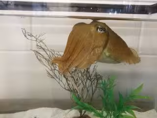 La sepia común, Sepia officinalis, en un tanque del Laboratorio de Biología Marina.
