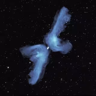 Muchas galaxias mucho más activas que la Vía Láctea tienen enormes chorros gemelos de ondas de radio que se extienden hasta el espacio intergaláctico. Normalmente estos van en direcciones opuestas, viniendo de un agujero negro masivo en el centro de la galaxia. Sin embargo, algunos son más complicados y parecen tener cuatro chorros que forman una 'X' en el cielo.