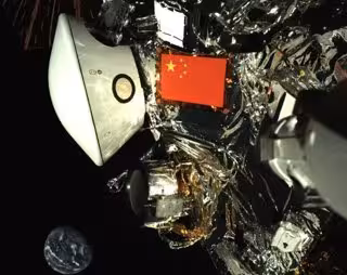 La imagen recién publicada, adquirida por una cámara de monitoreo instalada en el brazo robótico de la sonda, muestra la bandera roja de cinco estrellas de China y la cápsula de retorno blanca sobre el fondo de una Tierra azul distante, informa Xinhua.