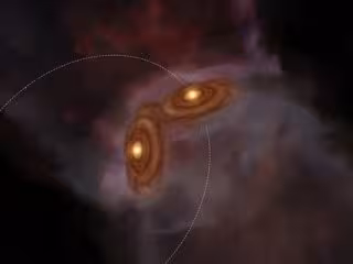 Esta primera "Animación ALMA" de estrellas gemelas arroja nueva luz sobre los orígenes de las estrellas binarias y los planetas que se formarán a su alrededor.