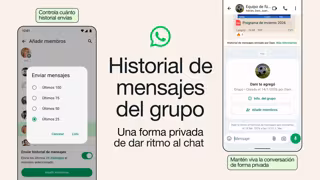 WhatsApp ha lanzado una nueva función de historial de mensajes en grupo, que facilita poner al día a los últimos integrantes de un chat grupal sobre los temas hablados antes de su entrada en el grupo, enviándoles los mensajes más recientes de la conversación para que dispongan del contexto.
