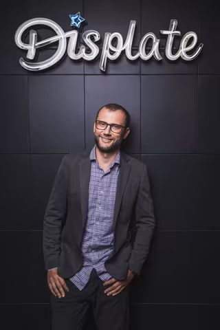 Displate fue fundada en 2013 por tres amigos que querían revolucionar el mercado del arte con sus innovadoras impresiones sobre metal. Ofrecieron tanto una nueva técnica de impresión como una forma única de colgar obras de arte con un sistema de montaje magnético sin herramientas. "Poco antes del lanzamiento oficial, enviamos un mensaje a algunos de los principales sitios web de tecnología. No obtuvimos respuestas", dijo Karol Banaszkiewicz, uno de los fundadores. "Los comienzos no fueron fáciles. Inicialmente, Displates se imprimía en un pequeño cobertizo de hojalata y nuestra primera oficina apenas podía albergar a cinco personas", agregó Banaszkiewicz.