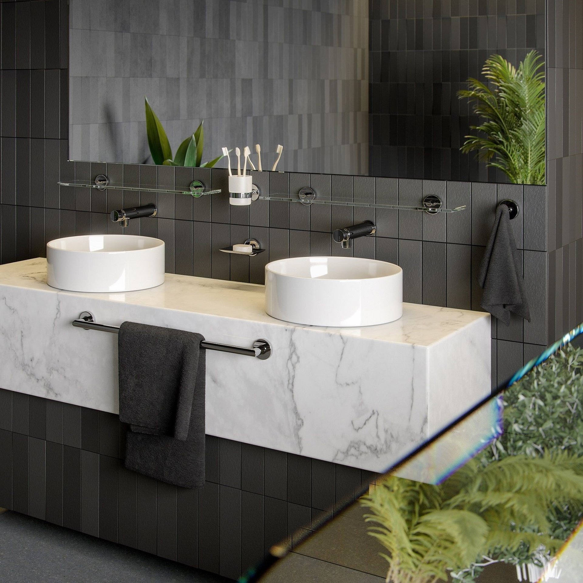 2. Accesorios de baño: El usuario se sujeta a la barra de ducha, en el resto, el contacto es menor: leva del portarrollos, vaso de cepillos de dientes, barra para toallas, etc. pero el contacto puede existir, especialmente en el escobillero, barra, toallero retráctil o percha.