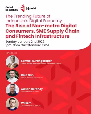 El 2 de enero, Semuel se unirá a otros ponentes del panel, a saber, Italo Gani, Venture Partner de East Ventures; Adrian Gilrandy, consejero delegado y fundador de Praktis, y Williem, consejero delegado y fundador de Verihubs. El Matchmaking virtual de VC se llevará a cabo el 3 de enero de 2022.