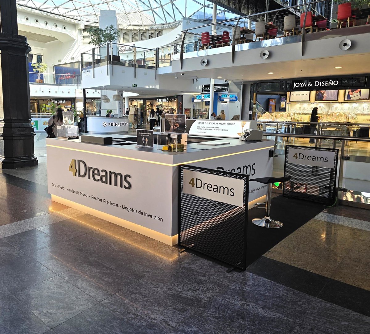 Tras sus recientes aperturas en Toledo y Vigo, 4Dreams refuerza su presencia en la capital madrileña con una propuesta que refleja su evolución hacia un modelo de negocio más sostenible e innovador. La empresa líder en el sector de compro oro ha inaugurado su stand número 33 en el Centro Comercial Príncipe Pío, elaborado parcialmente con Recycled Textile Stone, un material pionero desarrollado a partir de desechos textiles reciclados, resina de pino natural y otros componentes de origen sostenible como concha de mejillón gallego y yeso natural.