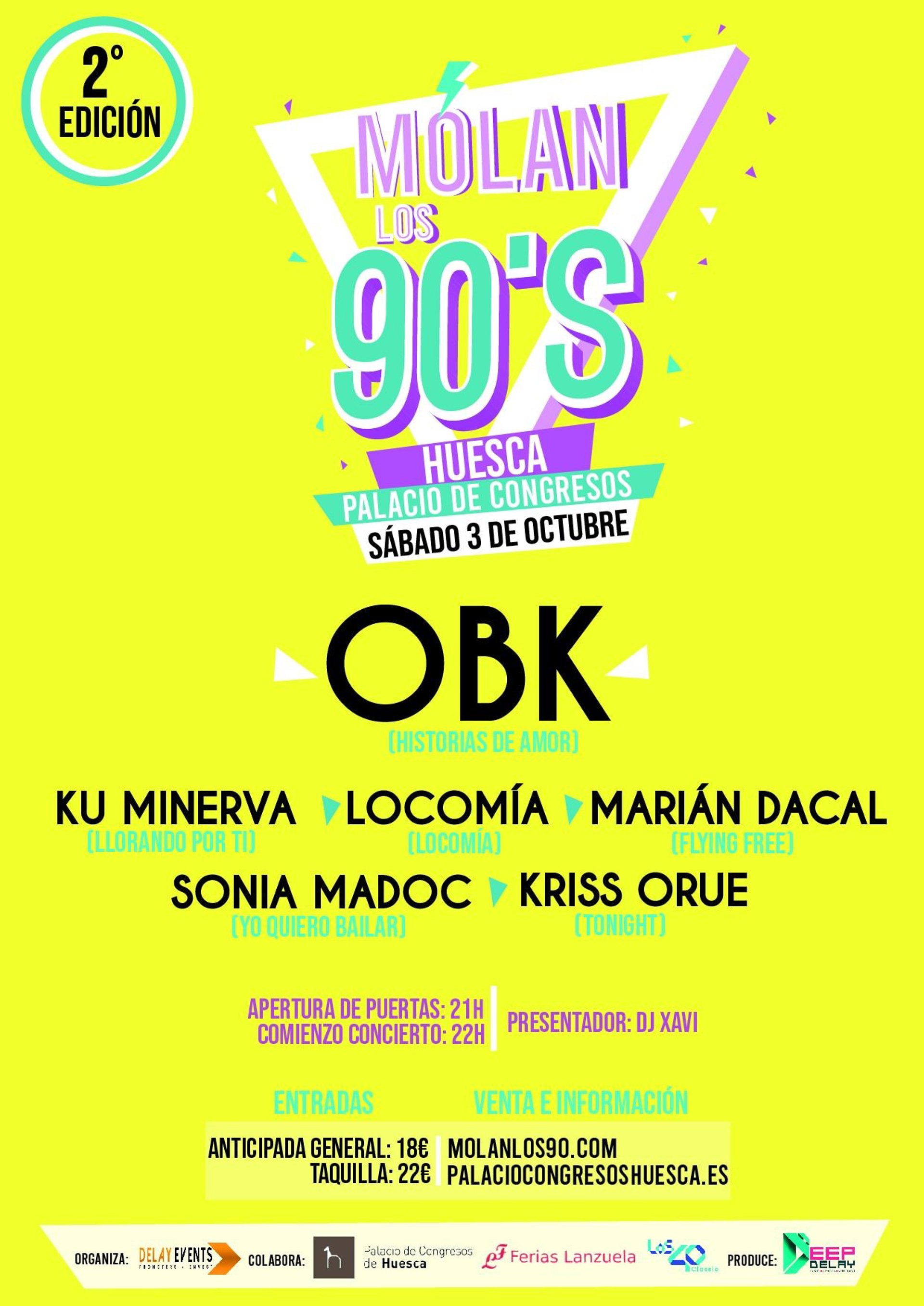 En esta edición, Huesca contará con la actuación de grandes artistas como Ku Minerva, Locomía, Marián Dacal, Kriss Orue y Sonia Madoc. Destacando la cabeza de cartel OBK y su reconocido éxito Historias de amor o "El Cielo no entiende", presentado por DJ Xavi.