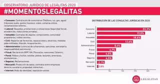Hasta ese momento, la mayoría de los españoles no había oído hablar, o de manera muy lejana, del significado de la palabra ERTE (Expediente de Regulación Temporal de Empleo), circunstancia que provocó que muchos ciudadanos contactasen con los servicios jurídicos de Legálitas para informarse y saber en qué medida les afectaba este acrónimo. De este modo, Laboral se erigió como la materia protagonista del año experimentando un aumento del 36,9% en el número de consultas con respecto al año anterior, situándose en los meses más duros del confinamiento, marzo y abril, como líder de las temáticas consultadas. Una de cada cuatro consultas recibidas esos días fue sobre esta materia y alcanzó un volumen récord en la historia de Legálitas. Laboral cerró 2020 como materia número dos en el ranking, recogiendo el 19,5% de todas las consultas llegadas a lo largo del año, abordando cuestiones como el descenso de las contrataciones y del grupo de empleadas del hogar en particular, los despidos, las reducciones de jornada, excedencias, conciliación o teletrabajo entre otras.