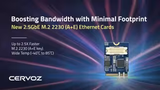 A medida que aumenta la demanda de redes más rápidas y fiables con el crecimiento de la AIoT, el streaming 4K y otras aplicaciones de uso intensivo de datos, las nuevas soluciones de Ethernet 2.5GbE M.2 de Cervoz son claves para preparar su sistema para el futuro y mantenerse a la vanguardia. Visite la página web de Cervoz o póngase en contacto con sales@cervoz.com para obtener más información.