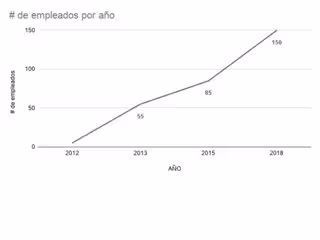 Gracias a la creciente demanda que tienen sus productos, el número de empleados ha aumentado exponencialmente, pasando de 5 empleados en el 2012 a 150 empleados en 2019.