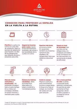 Después de un período de vacaciones, la vuelta a la rutina puede generar apatía, falta de concentración y estrés. La vuelta al trabajo, la preparación para el inicio de curso, las obligaciones antiguas y las que aparecen de nuevo "se convierten en una combinación de cargas que, mal gestionadas, pueden acabar por provocar dolores musculares que empeoren la situación", afirma Pablo de la Serna, fisioterapeuta y experto en terapia de calor