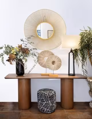 En esta temporada, la consola se concibe como un lienzo versátil que combina funcionalidad y estética. Sobre su superficie se pueden integrar piezas de diseño contemporáneo que marcan tendencia, como espejos para ampliar la luz natural, lámparas para crear atmósferas envolventes y esculturas decorativas con texturas orgánicas que aportan dinamismo y naturalidad.