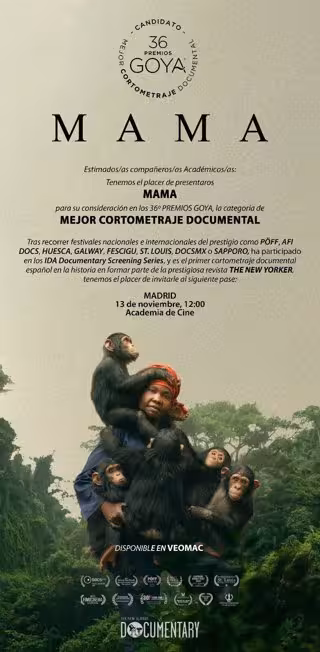 MAMA en EEUU: https://www.newyorker.com/video/watch/the-new-yorker-documentary-a-woman-and-her-chimpanzees-heal-together-after-trauma?c=series https://www.ctxt.es/es/20211101/Culturas/37959/cortometraje-new-yorker-chimpances-mama-director.htm