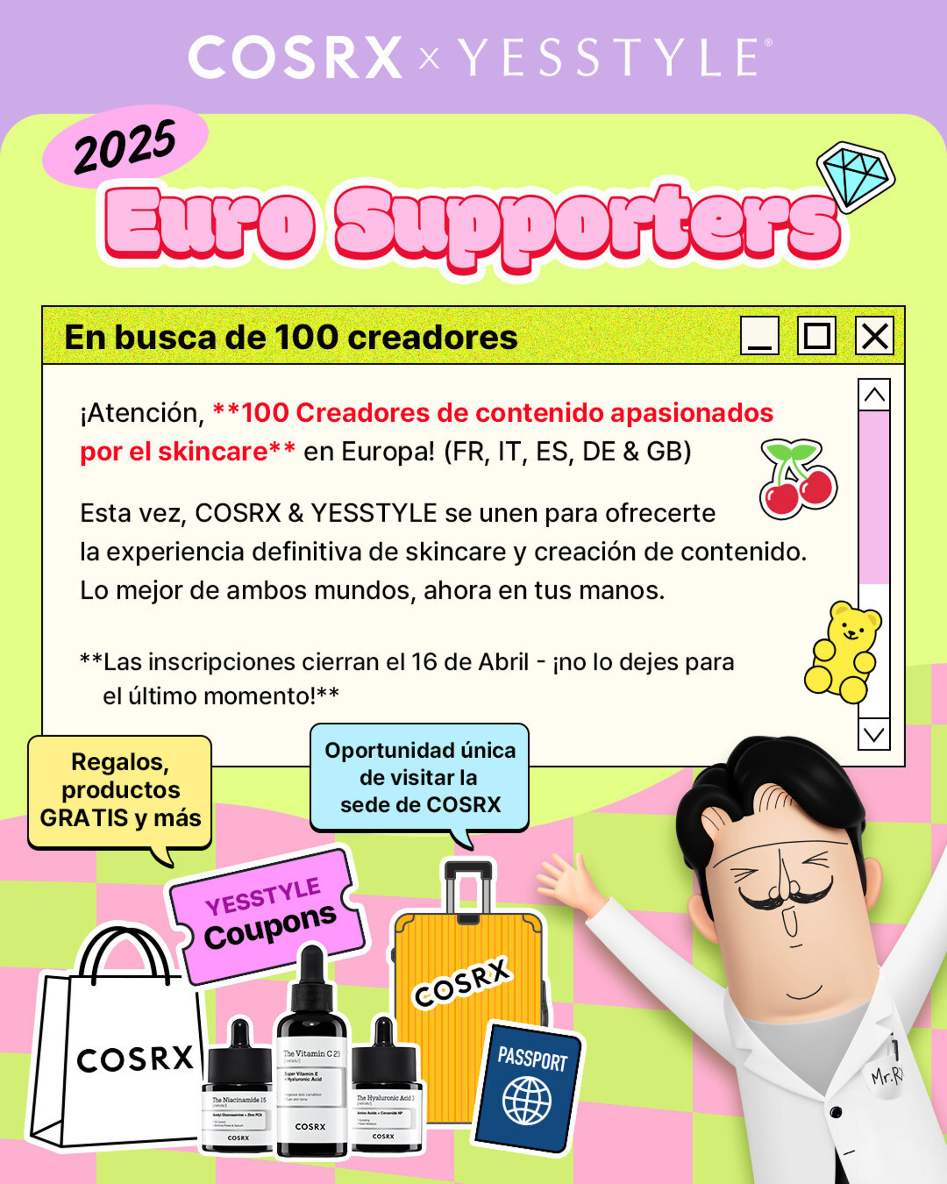 View original content to download multimedia:https://www.prnewswire.com/news-releases/cosrx-lanza-el-primer-programa-euro-supporters-en-colaboracion-con-yesstyle-302424040.html