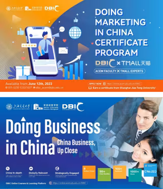 Para inscribirse en el "Programa de certificación para hacer marketing en China" y descubrir más sobre DBIC Online, visite nuestro sitio web oficial en https://online.acem.sjtu.edu.cn/DBIC. Esta plataforma pionera de aprendizaje en línea, desarrollada por Antai College of Economics and Management (ACEM), Shanghai Jiao Tong University (SJTU), es la primera de su tipo en China, diseñada específicamente para estudiantes internacionales. Ofrece una gran cantidad de cursos de inglés en línea, que se centran en la ecología y las prácticas comerciales específicas de China. Con DBIC Online, los estudiantes pueden ampliar su conocimiento sobre China, adquirir capacidades comerciales en China y construir una base para futuras actividades académicas o profesionales.