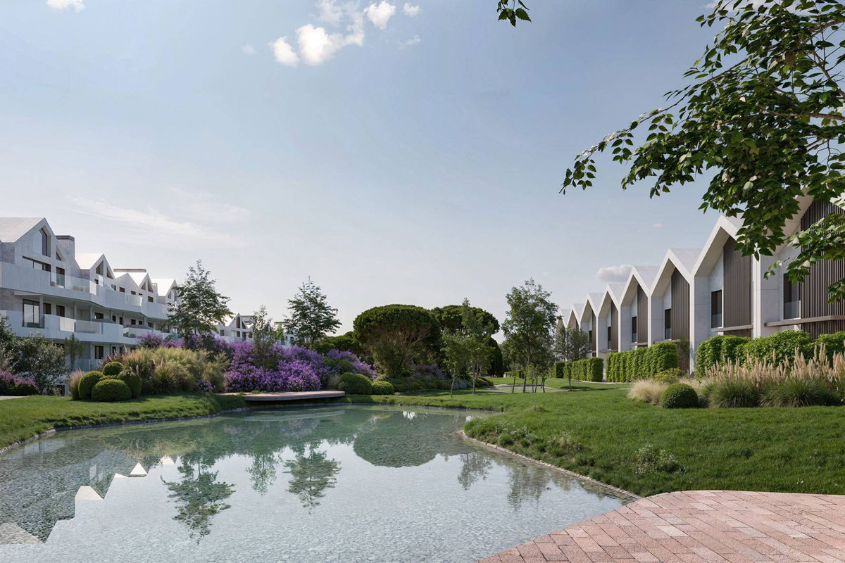 Abrir las ventanas y que la luz natural inunde cada rincón del hogar. Que los niños jueguen en jardines seguros mientras disfrutas de un café con vistas al campo de golf más grande de Madrid. Que la tecnología te facilite la vida sin complicarla, regulando la temperatura perfecta o la iluminación ideal con un simple gesto.