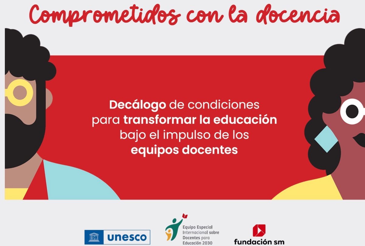 El Decálogo de condiciones para transformar la educación bajo el impulso de los equipos docentes, promovido por la Fundación SM y el Equipo Especial de Docentes de la UNESCO, a la luz de los datos arrojados por el Informe mundial sobre el personal docente, propone diez aportaciones. Este decálogo ha sido presentado en la Cumbre Mundial sobre Docentes celebrada en Chile en el mes de agosto.