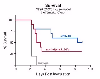 Acerca de DF6215DF6215 es una IL-2 humana recombinante monovalente modificada con vida media extendida que tiende a activar las células T y NK antitumorales para mejorar la relación beneficio-riesgo de los fármacos IL-2 históricos.