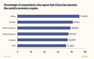 La encuesta mostró que el 91,46% de los encuestados de África elogió los logros económicos alcanzados por China. Europa le siguió de cerca con una participación del 81,6%, mientras que Norteamérica ocupó el tercer lugar con el 78,09%.