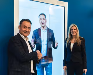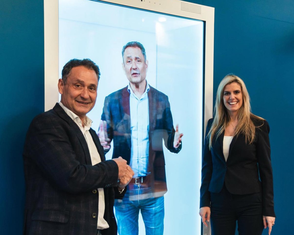 Uno de los momentos más llamativos del stand fue la instalación de un holograma de Enrique Tomás, en el que el fundador de la compañía compartía un mensaje muy personal sobre su trayectoria profesional y el fuerte vínculo que le une a Badalona.